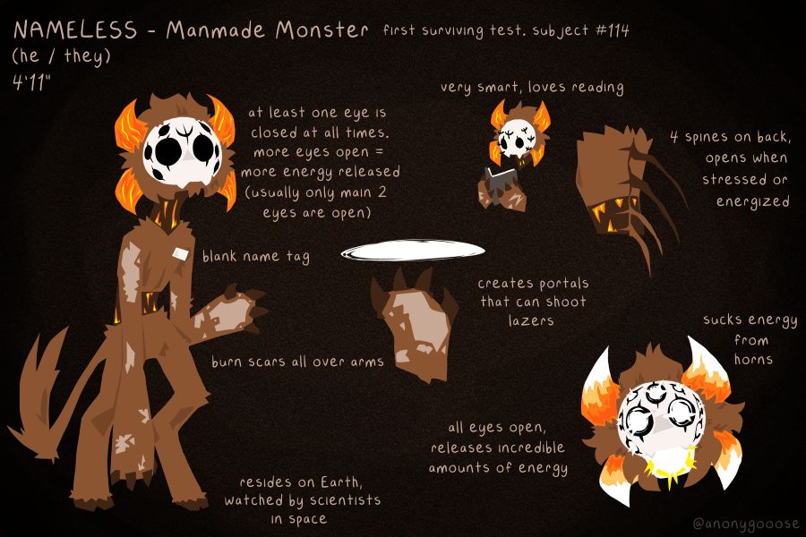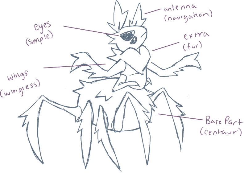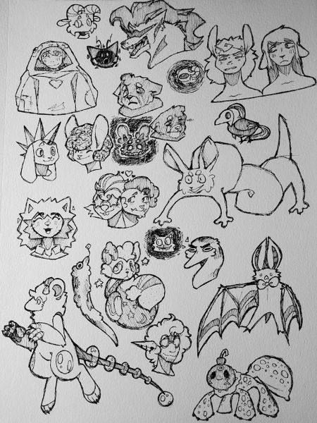A variety of different character designs I had come up with. This ranges from designs for passion projects to designs of entire species.