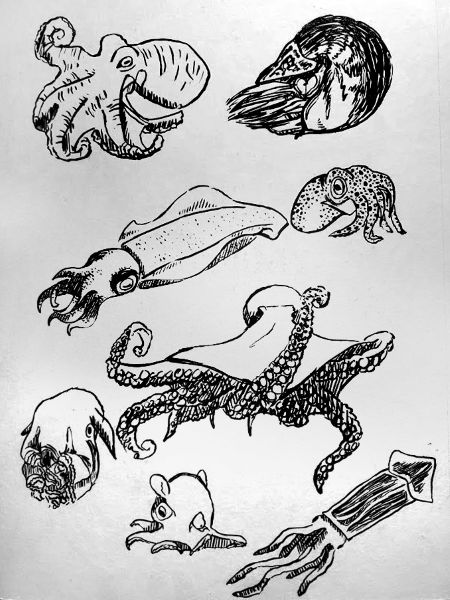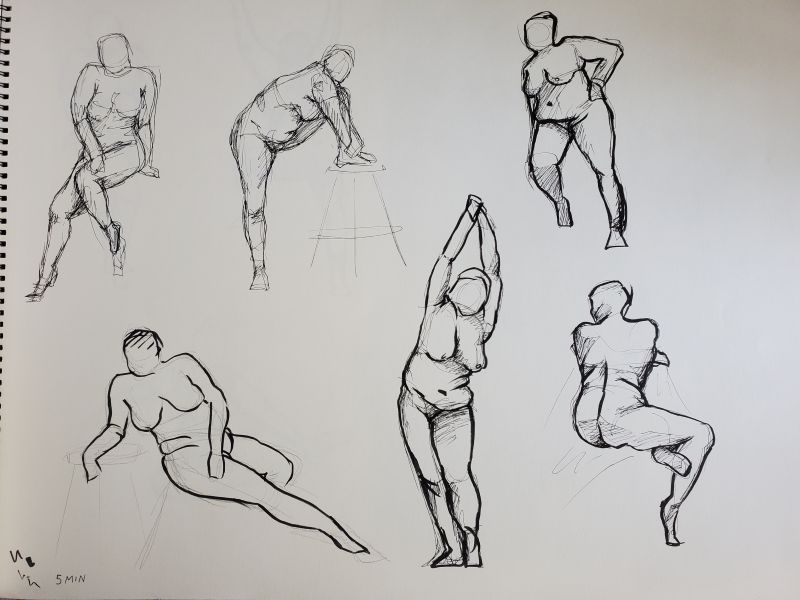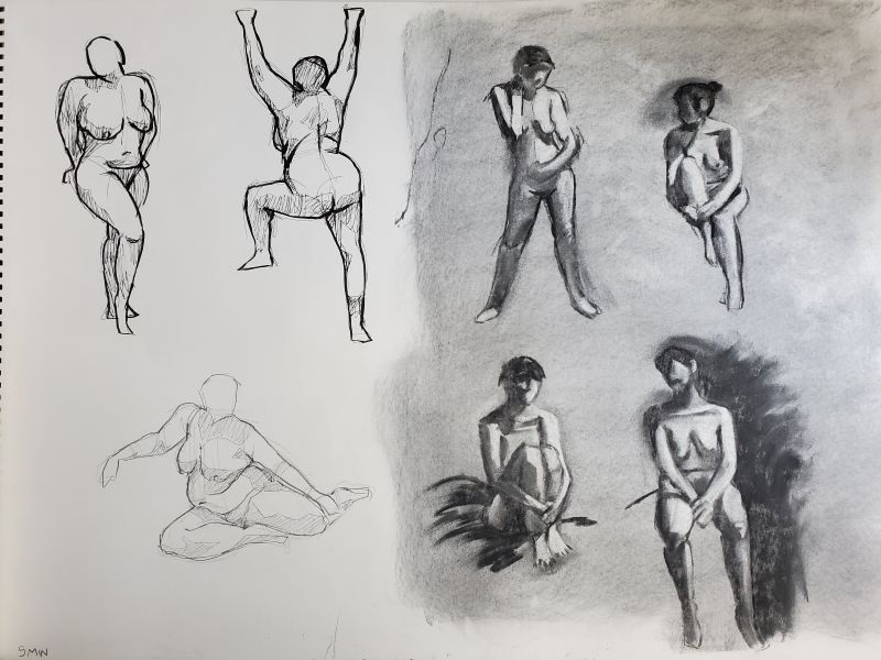 A variety of different studies I had made, referencing different objects and models as I draw.