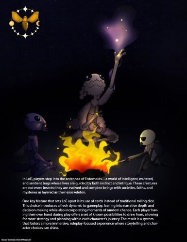 Lights of Entoma was an incredible learning opportunity for myself, as I got to learn about Tabletop RPG creation and the importance of getting it right. Despite the fact we were able to publish in just a few months, there is so much more we, Big Bugs Ink., want to work on.