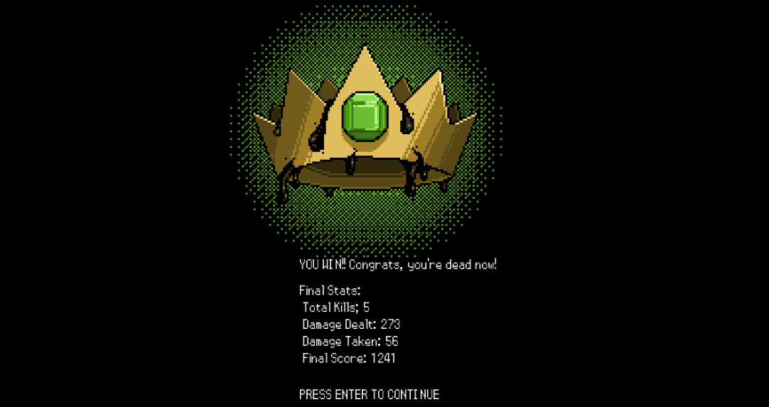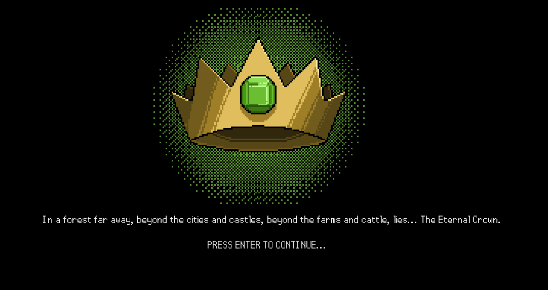 ...Clad in the remains of their armor, and equipped with a rusting sword, the skeleton mindlessly lunges towards you, sword outstretched. As you fight against this undead adversary, you notice a faint gleam of green in their eye. After defeating them, you stride into the darker stretch, and find yourself in a maze of trees and vines. You hear the clacking of bones, more undead fighters, as well as a faint squishing sound which you can’t place. Your path to the crown will not be easy, winding through the wood and blocked by many who would hinder your progress. But you will have your prize. Nothing, NOTHING, will stop you from getting… the Eternal Crown.