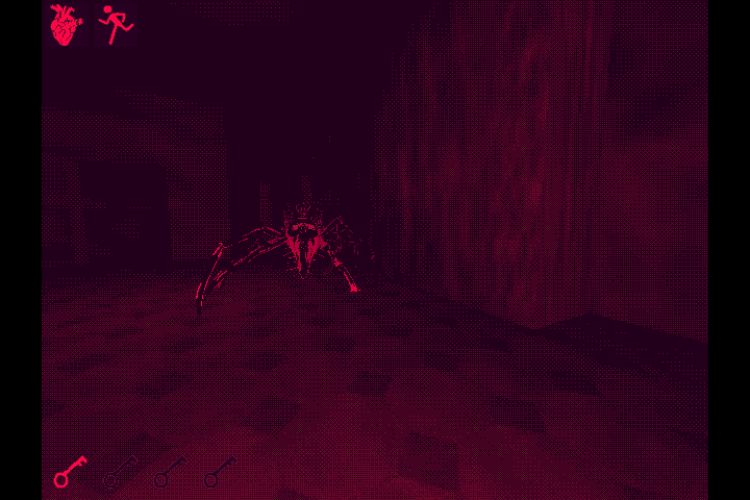 Carefully navigate a dark and crumbling manor as you try to find a way out, as it's made abundantly clear that you're not alone. A large, spider-like entity stalks your every move. The longer you haven't seen it, the more you should worry.