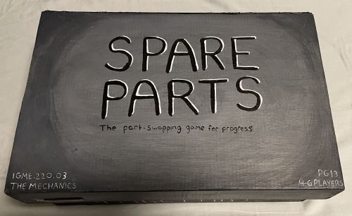 Spare Parts was the first board game I had ever worked on, being an incredible learning experience! It taught me how to be creative with my game design, as I had to physically create pieces and use what was realistically available to me. It was a challenge making sure all the pieces and mechanics were balanced, but it ended up great in the end.